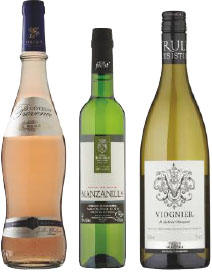 • Tesco Finest Manzanilla, Spain (£5.50 for 50cl) Green apples and a bracing sea-salty tang mark out this bargain, bone-dry sherry. Serve chilled with roasted nuts, green olives, anchovies or cold prawns.