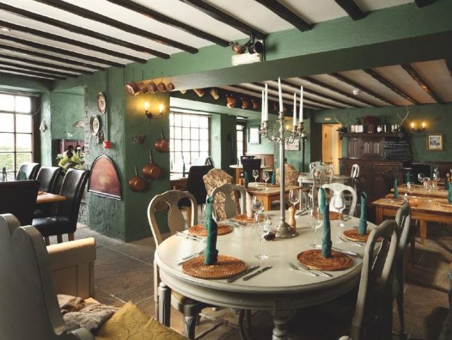 The inn serves produce from the owners’ kitchen garden in its cosy rustic restaurant