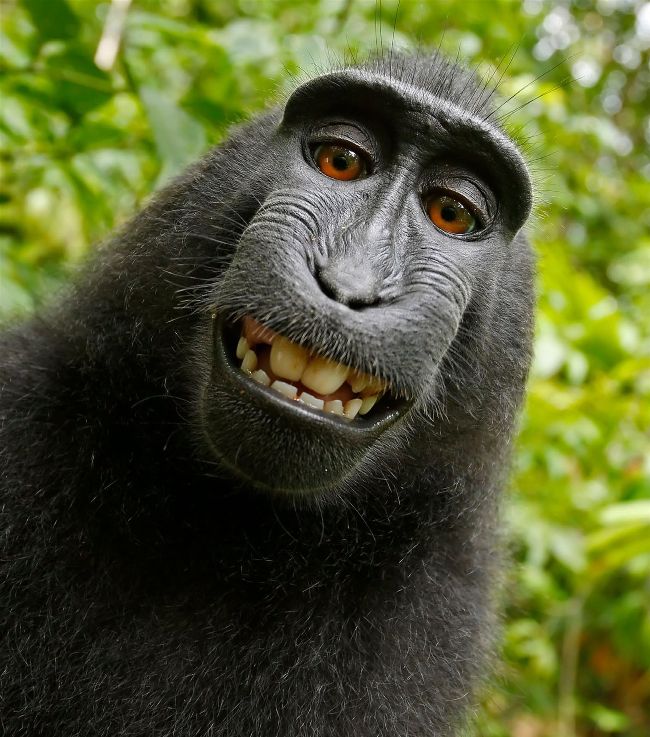 Portrait of a female Macaca nigra (Celebes crested macaque) in North Sulawesi, Indonesia, who triggered photographer David Slater’s camera.