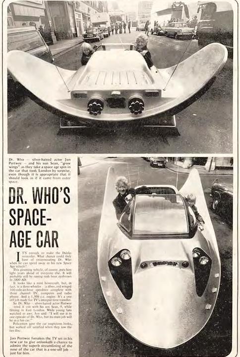 “It’s enough to make the Daleks surrender,” wrote Express reporter Frank Thompson. “What chance have they of exterminating Dr. Who if he can speed away in a space-age vehicle like this?… This car puts him, as usual, light years ahead of everyone. It will probably still be raising rush-hour eyebrows in the year 2000.”