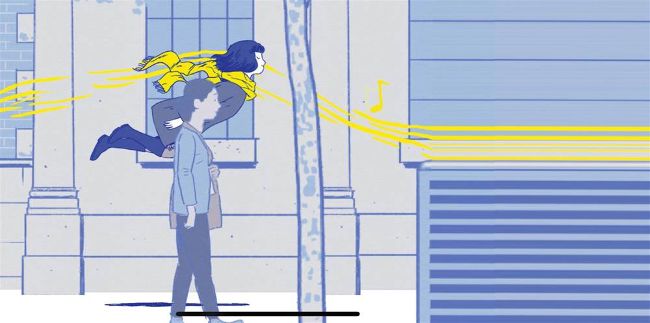 Florence Yeoh encounters Krish Hemrajani, and it’s not love at first sight – it’s love at first sound. Their meetcute is a combination of two different relationship metaphors, wonderfully and wordlessly illustrated in a sequence in which the title character is both knocked sideways (the game switching from portrait to landscape orientation for a single chapter) and quite literally swept off her feet (she floats dreamily past fellow pedestrians, buoyed along by the bright melody coming from Krish’s cello). And Kevin Penkin’s delightful score offers a third. If a particularly well-suited couple are said to make beautiful music together, then Florence and Krish would appear to be the perfect match, her cheerful piano and his dancing strings contributing equally to a gorgeous, lively duet as their relationship blossoms.