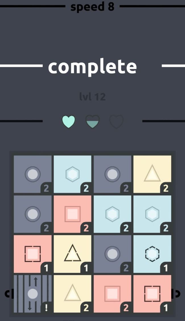 If taking your time is crucial in Classic mode, that’s not an option in Tempo, which tasks you with making matches quickly to gain hearts as a music track is steadily layered in, à la Lumines. A line passing down across the field reduces the number of each tile, increasing in speed as the song progresses. Each completed heart, meanwhile, effectively serves as an extra life, used automatically to reset the grid when you’re out of moves.