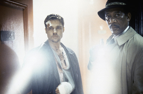 Instead of opening the mysterious box to discover his pregnant wife’s head, Brad Pitt’s harried Detective Mills instead finds a delicious frosted cake which he shares with serial killer John Doe, burying the hatchet and allowing Morgan Freeman’s Lieutenant Somerset to retire after all.