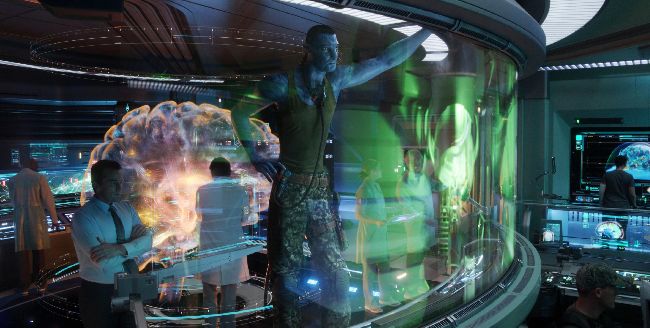 Above: Colonel Miles Quaritch (Stephen Lang) broods in his new body.