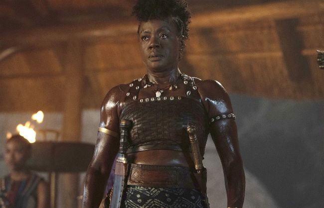 Davis, all tooled up as General Nanisca in The Woman King.