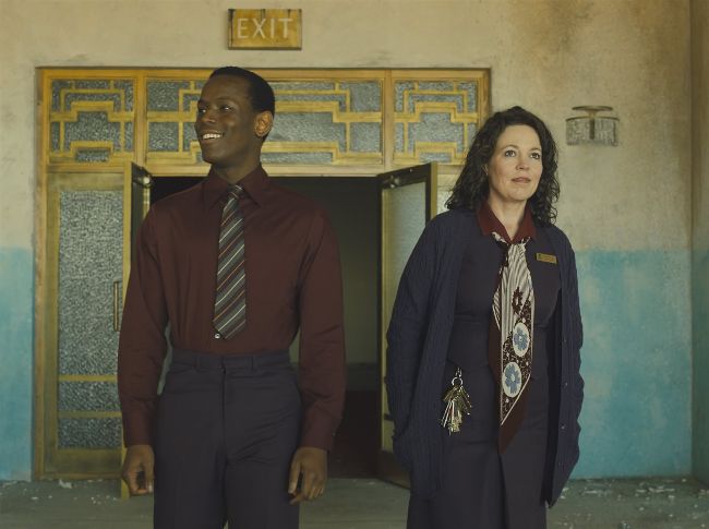 The magic of the movies: Stephen (Micheal Ward) and Hilary (Olivia Colman).