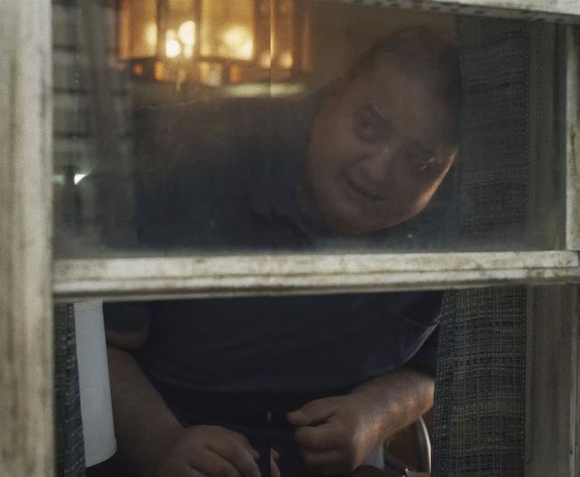 He is friendly but quiet, sincere, softly spoken — yet somewhat intense. There’s a heaviness about him — strength yet also fragility, and certainly no sign of an ego. This has all served him well in The Whale, in which his character Charlie, a man who finds the good in everybody, a man who sees light in the darkness, a 600lb man with congestive heart failure and potentially a few days left to live, wins you over within seconds. Fraser’s eyes shine throughout, transcending the prosthetics he’s encased in.