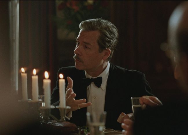 Capitalist Harrison Lee Van Buren Sr (Guy Pearce) and, below, his entitled son Harry (Joe Alwyn).