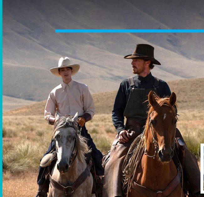 Peter (Kodi Smit-McPhee) and Phil (Benedict Cumberbatch) ride out.