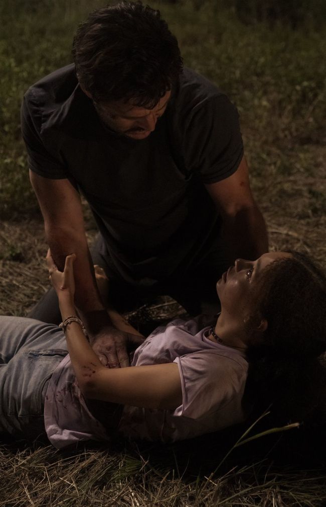 Joel (Pedro Pascal) comforts his daughter Sarah (Nico Parker).