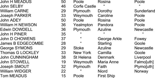 Note that the names are actually the signatures of the crew members (apart from the three who made their mark). It’s rarely possible to achieve 100 per cent accuracy – sometimes it really is guesswork as to what the original text is meant to say.