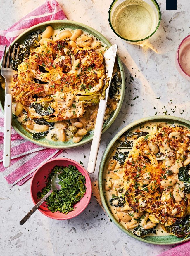 Cauliflower steak with piccata sauce & white beans