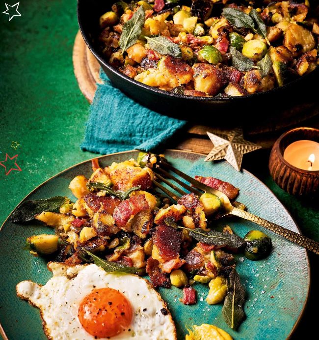 This is a Christmassy twist on a classic brunch. To make the recipe even easier and create extra texture, we’ve simply chopped the leftover vegetables rather than mashing them.