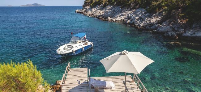 Situated halfway up Alonissos’s east coast, Kolokithi Bay (3) is a show-stopper of a villa, peering out across a seemingly endless expanse of blue. Its seven bedrooms - in two buildings - come in a soothing earthy palette and feature a smattering of rustic touches - an exposed stone wall here and a reclaimed timber table there. Fragrant gardens, a turquoise sliver of a pool and sun terraces galore make this a dream retreat.