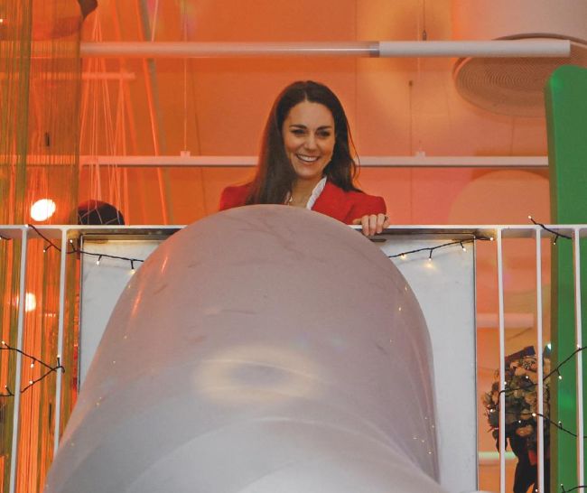 Told some staff used the slide instead of the stairs, Kate handed her bag to an aide and said she should do the same.