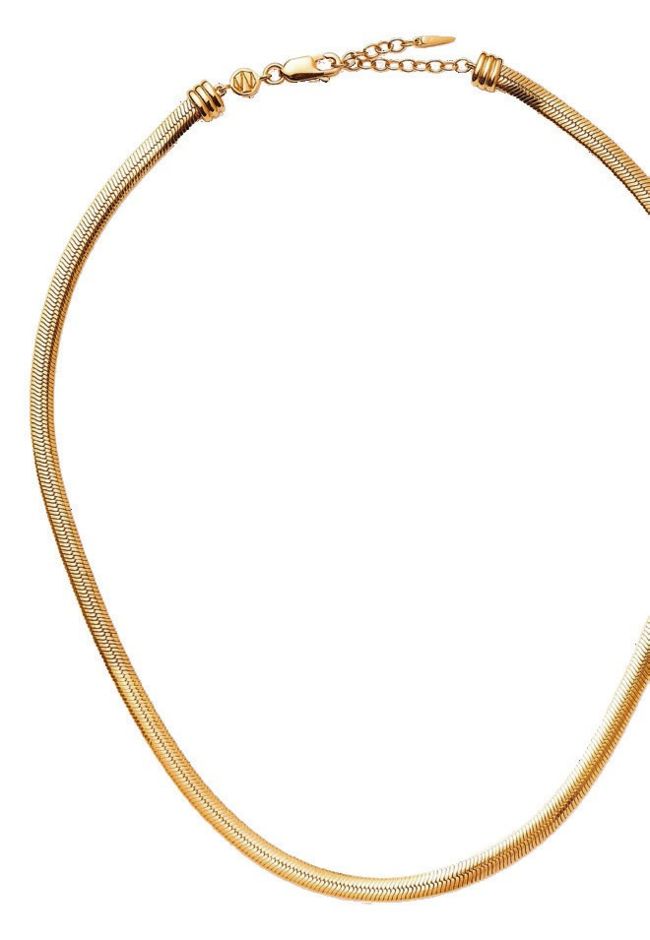 Missoma flat snake chain necklace, £198, and Lucy Williams x Missoma square snake chain necklace, £189. Visit missoma.com