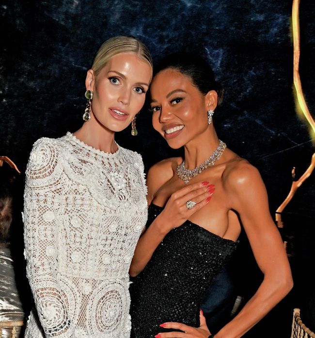 The Marchioness wears a beaded bodice and trousers by Caroline’s Couture for Chopard’s Universal Gala. Emma with Lady Kitty Spencer at the amfAR gala; making the “best-dressed” lists in Hamda Al Fahim; relaxing on the beach with Baby Reindeer star Nava Mau; enjoying a boat trip; congratulating Rihanna on her pregnancy; and posing with her dear friend Evan Ross and Alton Mason