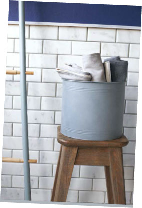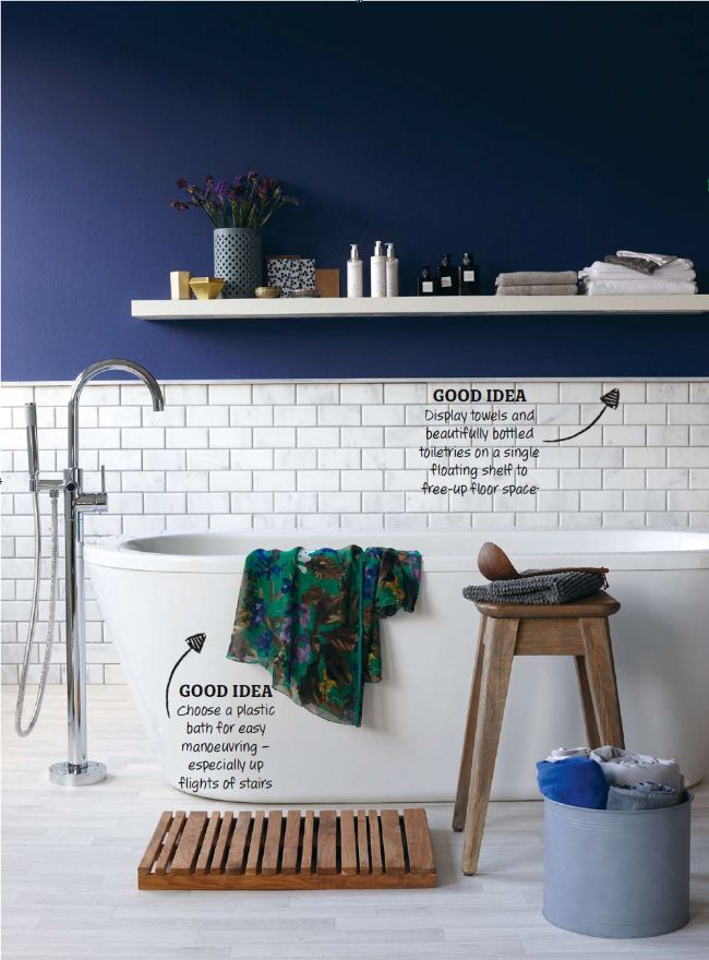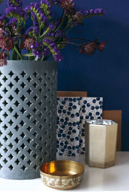 Take a moment to reflect in a homemade utopia of rich indigo walls opposite pearly whites – a scheme that speaks of elegance and tranquillity