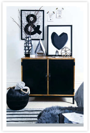 Toughen the look with punchy metal furniture, such as this rustic black chest