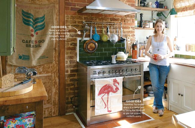 Inspiring homes ‘The original larder is such a joy to have and makes for amazing storage space,’ Stephanie says. ‘The coffee sack over the door was from a little place in Forest Hill; we always pick them up here and there. I even made our blinds out of one I got for £1 from Shoreditch market!’
