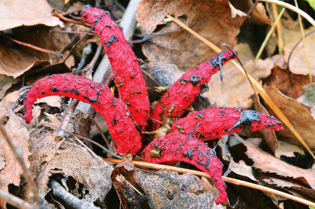 Though the octopus stinkhorn (Clathrus archeri) – also known as devil’s fingers – looks like it sprouted from the Upside Down in the popular Netflix series Stranger Things, it was in fact introduced into European forests from Australia. At the beginning of its life, the fungus hatches from a slimy gelatinous egg, extending its crimson tentacle-like protrusions outwards.