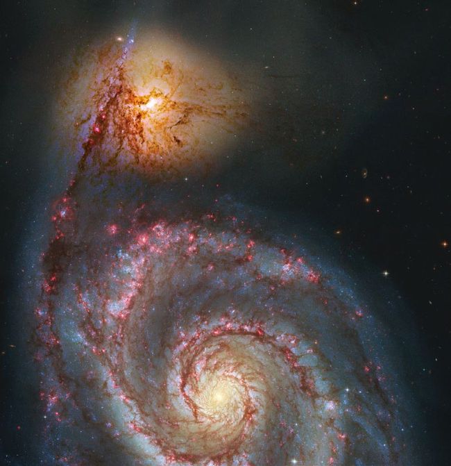 Gravity holds galaxies together and can sometimes cause two galaxies to interact