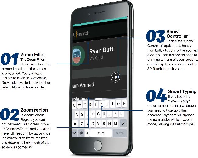 Enable the ‘Show Controller’ option for a handy thumbstick to control the zoomed area. You can tap on this once to bring up a menu of zoom options, double-tap to zoom in and out or 3D Touch to peek-zoom.