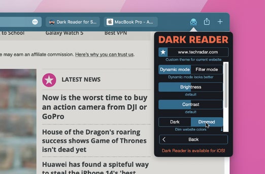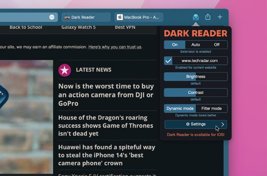 IF YOU’RE PRONE TO AFTER HOURS WEB SURFING, then Dark Reader is a must-have extension for preserving your eyesight. It creates dark themes for websites on the fly, inverting bright colours and making them high contrast and easy to read at night.