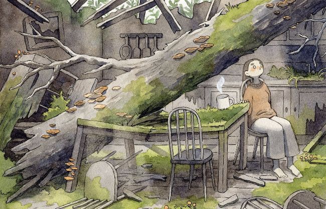 “This digital painting shows an abandoned office scene. It’s about seeing beauty in the mundane.”