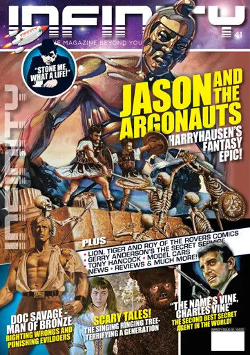 With the new Bond film making hay at the box office we thought it only right and proper to bring you a feature on the Second Best Secret Agent in the Whole Wide World, namely Charles Vine, first played by Tom Adams in Lindsay Shonteff’s Licensed to Kill (1965). We also recall the many and varied adventures of pulp fiction hero extraordinaire Doc Savage and go on an epic voyage with Jason and the Argonauts, a Ray Harryhausen favourite that never gets old. Remember The Singing Ringing Tree? Kids of a certain age were terrified by this crazy show and since it has just been issued on Blu-ray we’ve come up with a fascinating article on it. There’s a heck of a lot more too but what are you waiting for? Buy a copy now.