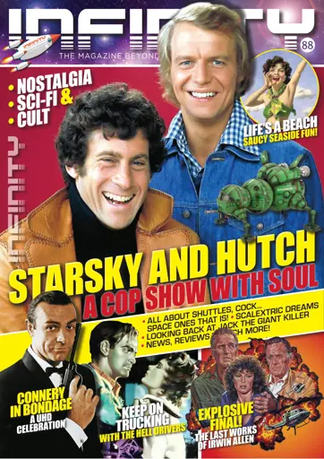The usual packed programme awaits you within the pages of this great new issue of Britain's fastest-growing magazine of cult TV, sci-fi and fantasy. Starsky and Hutch are our cover stars and you can read all about the history of this classic cop show. We also look back at Jack the Giant Killer (1962) and take to the road with Patrick McGoohan, Sean Connery and Sid James in Hell Drivers. Then we take to a much smaller road with a history of Scalextric and get in the holiday mood with a sunny piece on Seaside Sizzlers. Miss this and you are missing a treat!