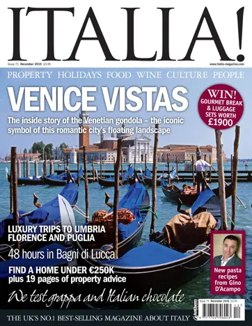 The new issue of Italia! is proud to present the fascinating story of the gondola – one of Italy's most famous icons. Find out about the politics history and traditions of these vessels of Venice with Mario Matassa's exclusive feature. There's plenty more to get your teeth into too – from new recipes from Gino D'Acampo to luxury breaks in Umbria Tuscany and Puglia and more food drink travel and property inspiration too.