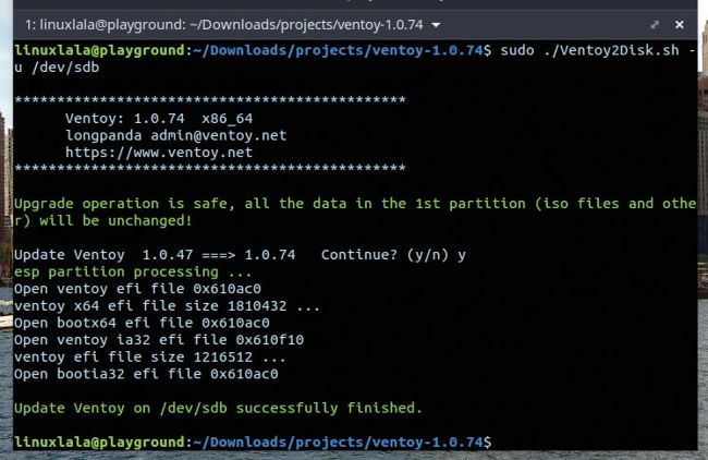 You can safely upgrade Ventoy to a newer version with the -u command option, which preserves all data such as image and json files.