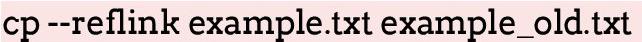 example.txt. Notice that the code --reflink endcode option is an addition to the standard Linux copy command. However, unlike a regular copy of a file, this new file takes up practically no space until you start making changes to it. This applies to massive files such as virtual machines and video files. So, it’s possible to, almost instantly, make a copy of a large file such as a virtual machine file, make some changes and then swap everything back if you don’t like the outcome.