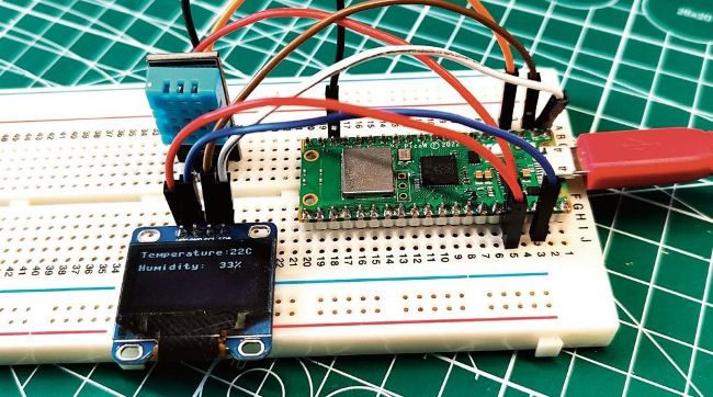 I n this tutorial, we’re building something to keep our strawberries safe from frost. Using a DHT11 temperature sensor, an OLED display and a Pico W, we will get live temperature data displayed on the screen and an alert to a smartphone using Ntfy.sh. The circuit for this project is broken down into two parts. The input is our DHT11 temperature and humidity sensor, which connects to the Pico’s 3.3V output, GND and the data pin to GP2. The OLED display connects to 3.3V, GND and to SDA (GP0) and SCL (GP1). See the high-res diagram, available in the download for this issue.