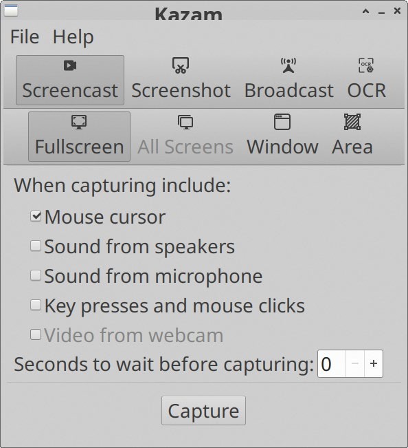 Kazam2 has an interface that covers the basics, and it’s generally ready to run once all needed dependencies are installed.