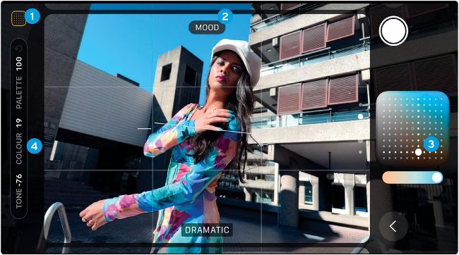 Swipe the control point up or down to adjust a style’s Tone. Swipe left or right to adjust Saturation.