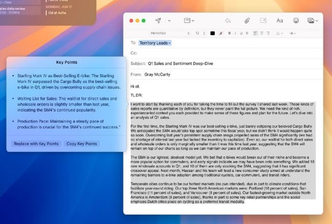 If you’ve written a long piece of text, you can have Writing Tools summarise it for you, into a short paragraph, bullet points, a list or a table. You can then replace or augment your text with this summary