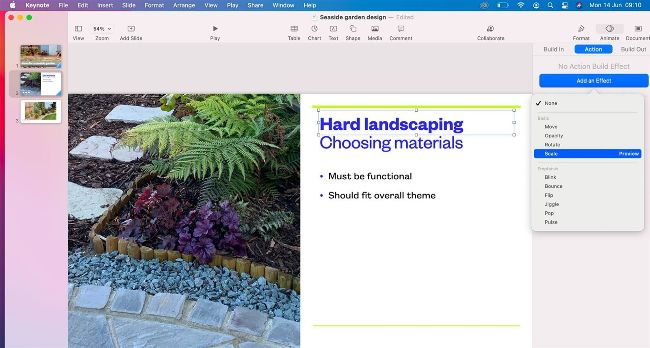 But who wants to create a basic presentation? We want to wow our audience and dazzle them with a slideshow they will remember long after it’s finished. One way to do that is by using animation. Keynote makes it easy not just to add transitions between slides, but to animate the appearance of elements within a slide. Want bullet points to arrive one at a time? You can do that. Want an image to fade in slowly after the audience has seen the headline? You can do that. How about adding video and audio? Keynote has you covered there too.