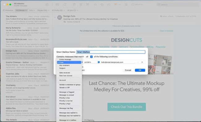 FIND THAT YOU rarely delete incoming mail and almost never file it in a folder? It’s a common issue. The result is thousands of messages sitting in your inbox. Perhaps many of them are even unread. While modern Macs and fast broadband mean that huge inboxes aren’t the problem they once were, it’s still good practice to organize incoming mail. Apple makes it easy with smart mailboxes, and rules, which perform actions on messages. Spend some time setting these up and your inbox will be much less cluttered.
