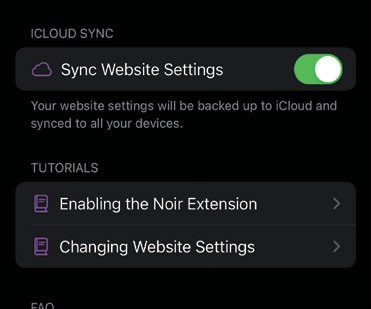 Under Noir’s More tab, you can enable Sync Website Settings using iCloud. This means there’s no need to repeat yourself on each individual device.