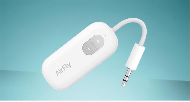 The updated AirFly (2nd Gen) lets you connect Bluetooth headphones to wired music systems.
