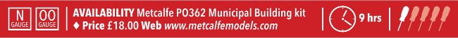 M etcalfeModels has an increasing range of kits being released in both ‘N’ and ‘OO’ gauges. To see how easy these kits are to assemble, I acquired one of the most recent ‘OO’ gauge kits – the municipal building, which can either be built as a small hospital, health centre, school, veterinary practice, court or anything that takes your fancy. The kit comes well packaged with clear instructions and I found the parts to be cleanly cut, coming away from the backing card very easily.