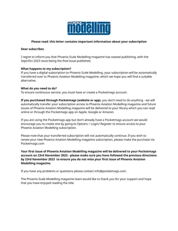 Di seguito una selezione di articoli in Phoenix Scale Modelling Important Notice.