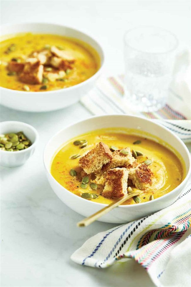 The nutritional yeast gives this soup a bit of a ‘cheese-like’ flavour, and I keep the spices simple to allow the flavours of the vegetables to shine.