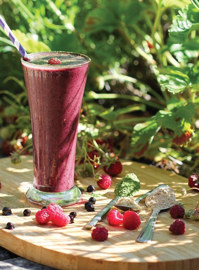 1 Blend strawberries, agave syrup and beetroot crystals.