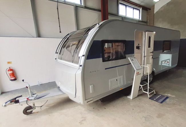 This is indeed a four-berth, but the Isonzo features a layout that is ideal for couples who mainly tour on their own, often staying on a seasonal pitch. It has an end washroom, a spacious and airy central kitchen and a capacious front lounge. This year, as with all other Adoras, it has been given a facelift, with a sleek exterior and a more upmarket interior featuring cloth partitions, should you need to draw the one marking out the bedroom.