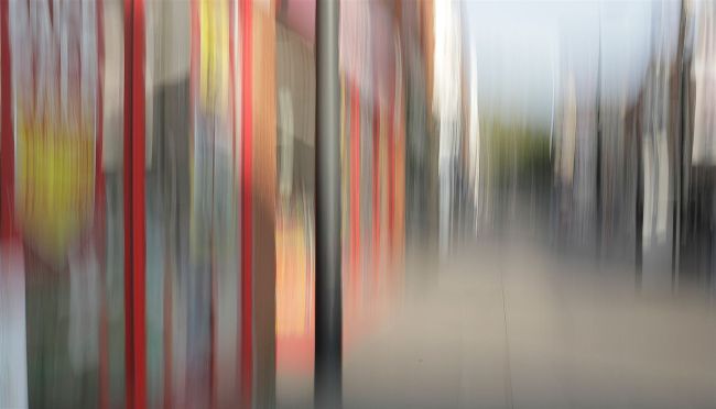 There’s beauty everywhere if you look for it, even outside a pound shop. Look for bold colors and the vertical lines of shop windows or lamp posts, then try an up/ down camera movement over a 1/15 sec exposure to create streaks of blur. A side-to-side movement or a swivel can also make interesting results.