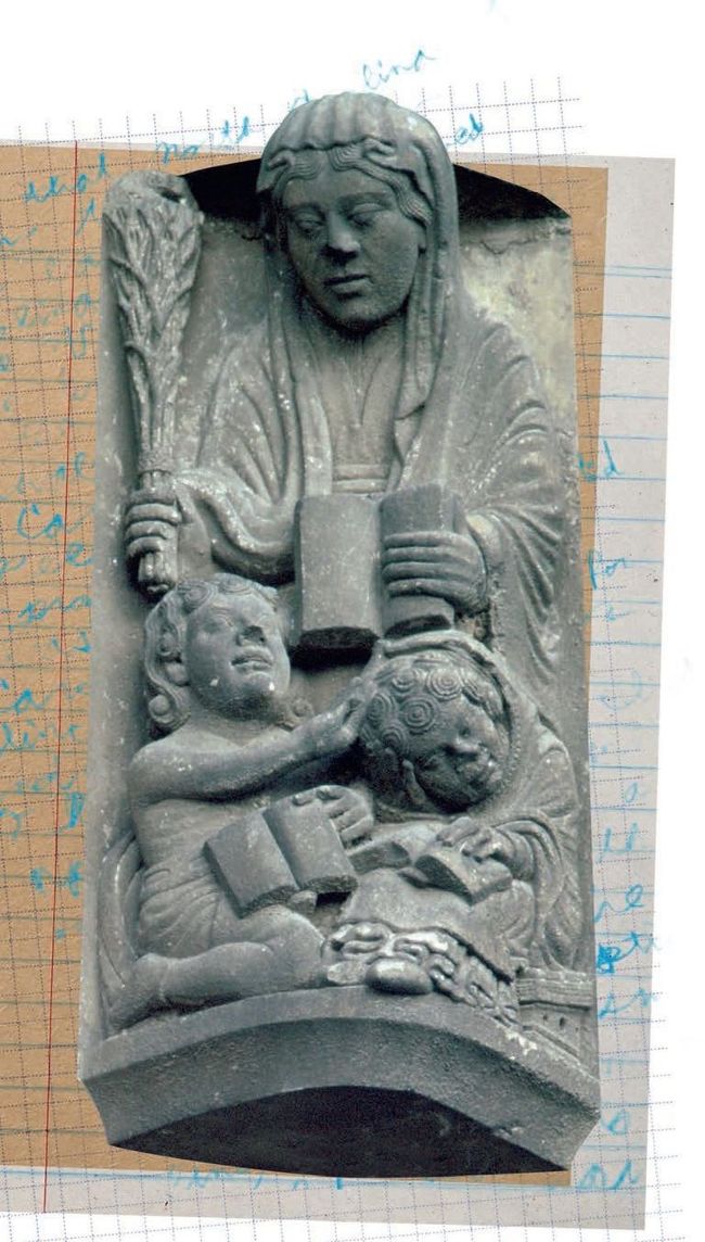 Previous page: A carving from Chartres Cathedral shows Dame Grammar threatening to beat her pupils with a bunch of twigs