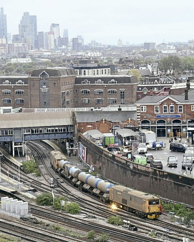 Class 73 electro-diesel No. 73212 Stephen Eaves arcs on the third-rail as it heads south out of Clapham Junction on October 20 while working the 3W90 railhead treatment train circuit from Tonbridge. Classmate No. 73109 Battle of Britain 80th Anniversary was at the other end of the formation.